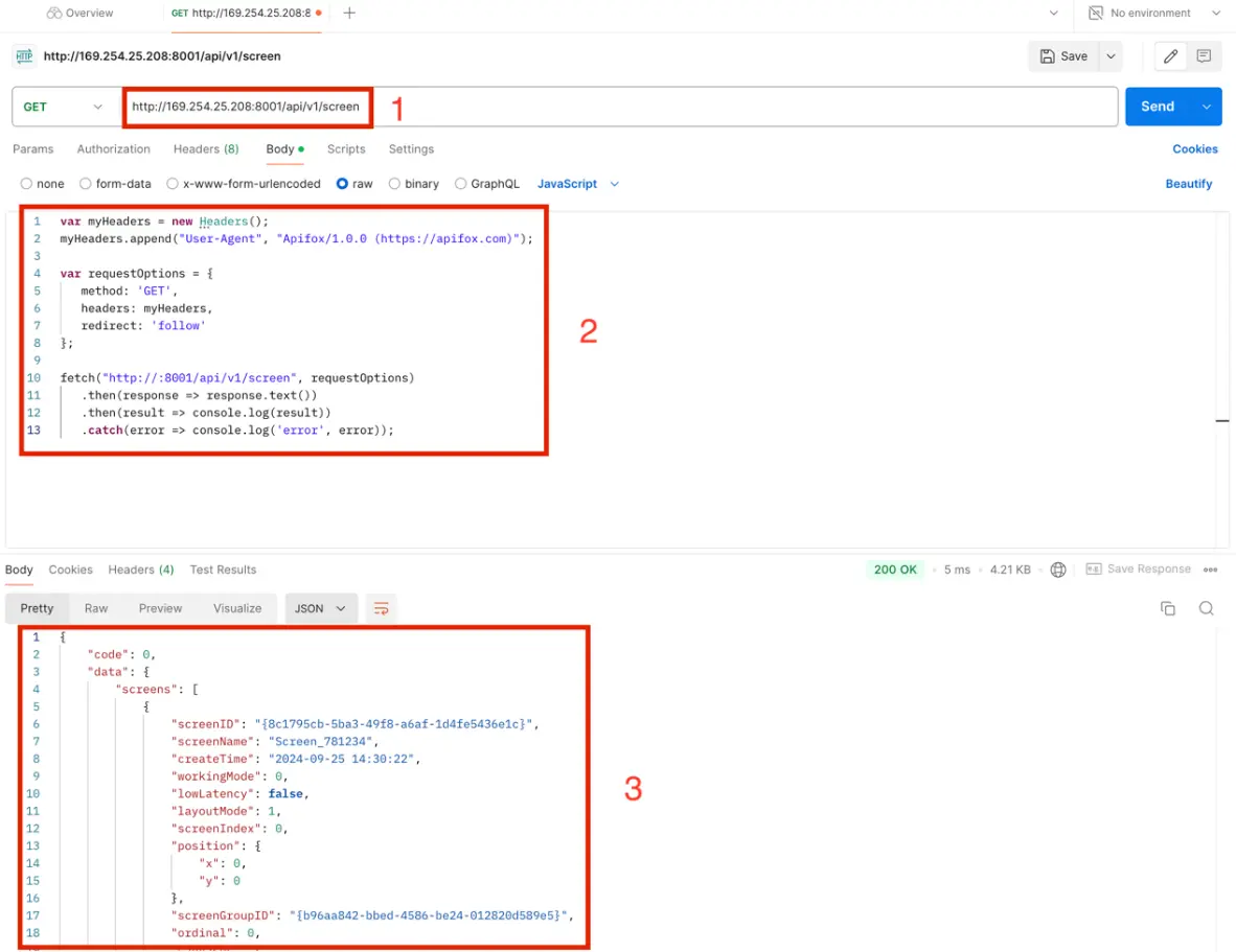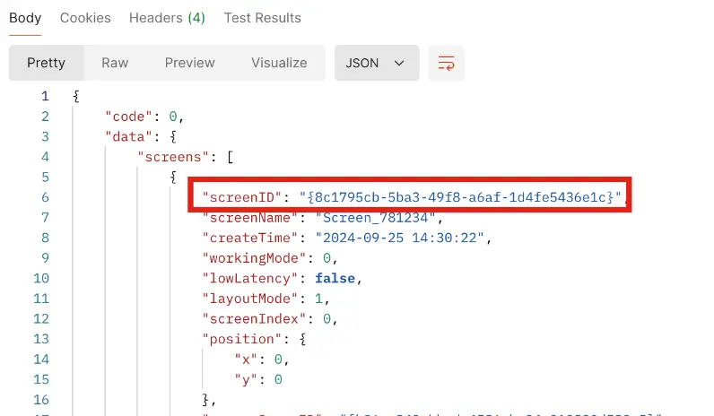 To use the MX40 Pro API to obtain the ScreenID of the LED screen, you can follow these steps using a tool like POSTMAN (or any API testing tool you prefer).