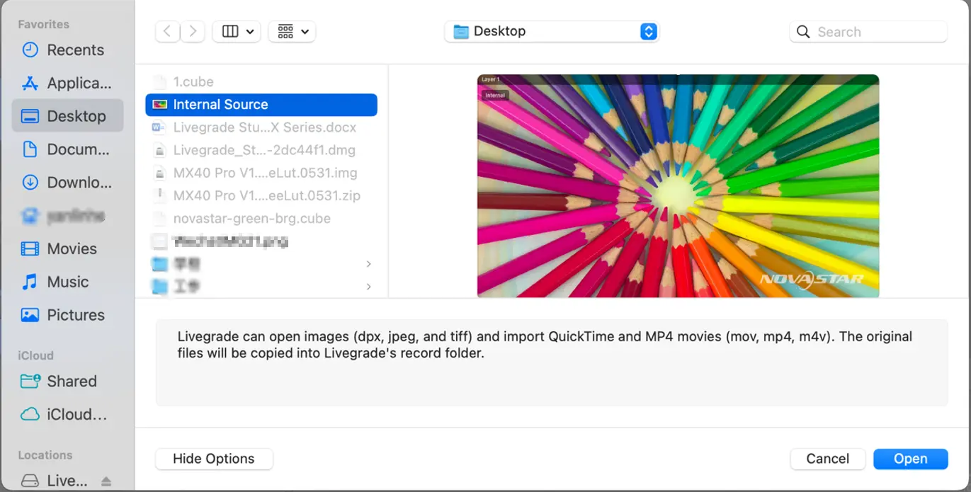 Since Livegrade does not have direct access to the source content currently displayed on the LED screen, we need to import an additional media as a reference for 3D LUT adjustment on the Livegrade software.