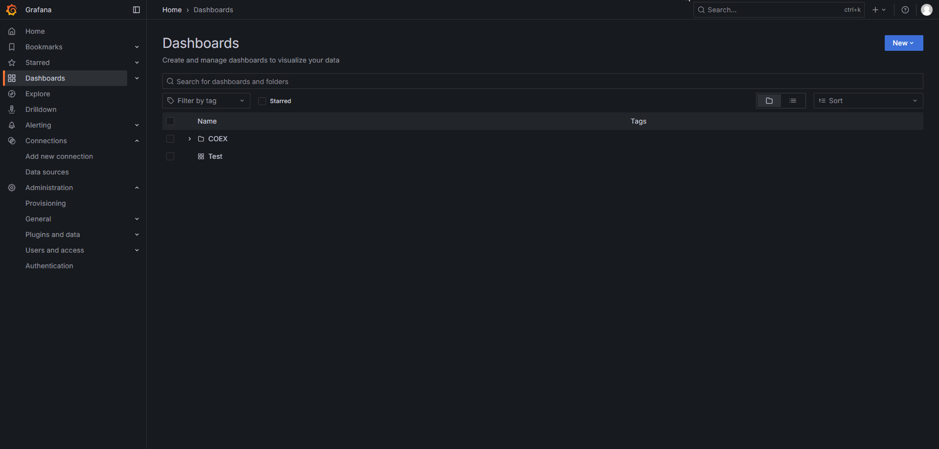 Create a new dashboard in the Dashboards panel.