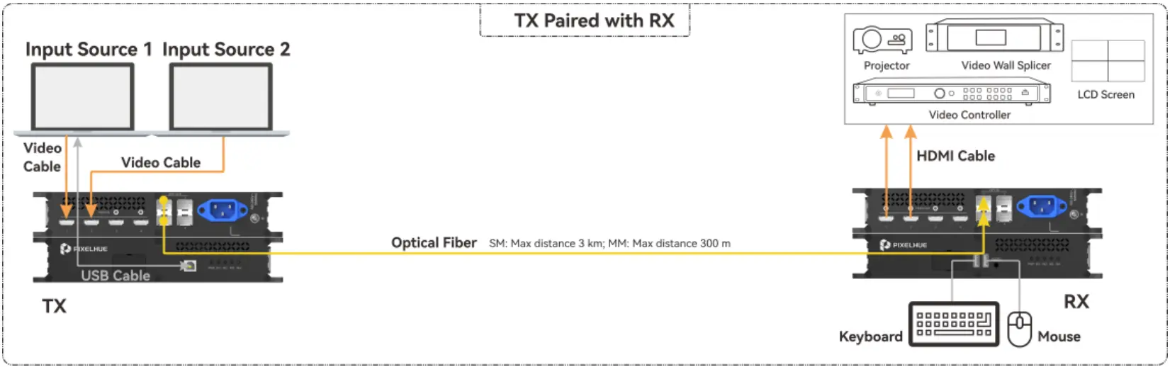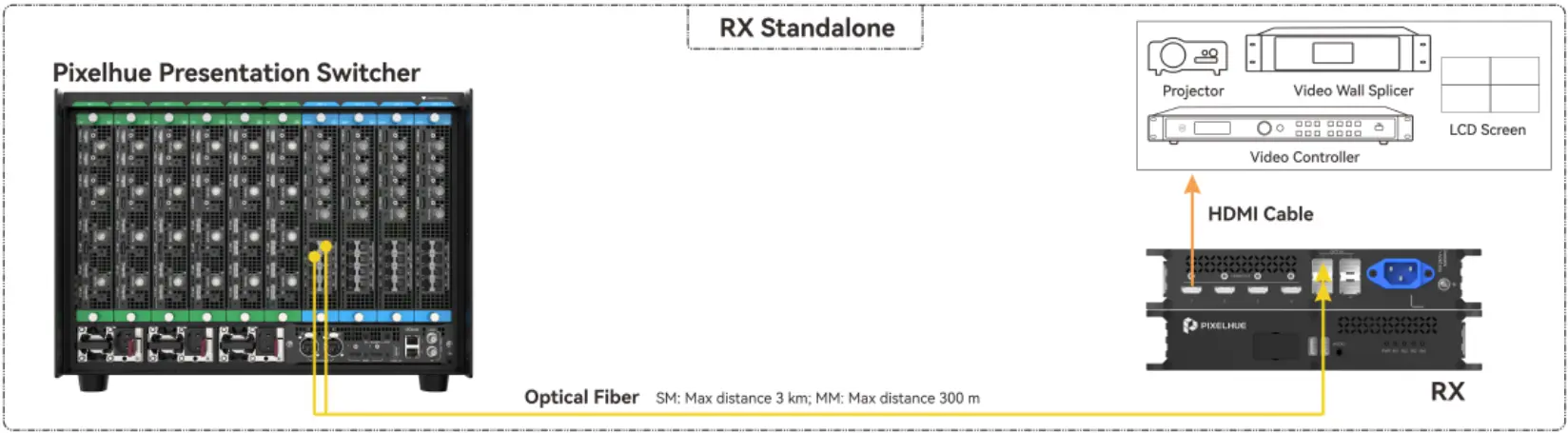 PIXELHUE's optical port output can be directly connected to the COEX device MX30/MX40 Pro using the optical fiber cable, eliminating a pair of optical-to-electrical converters in the middle.