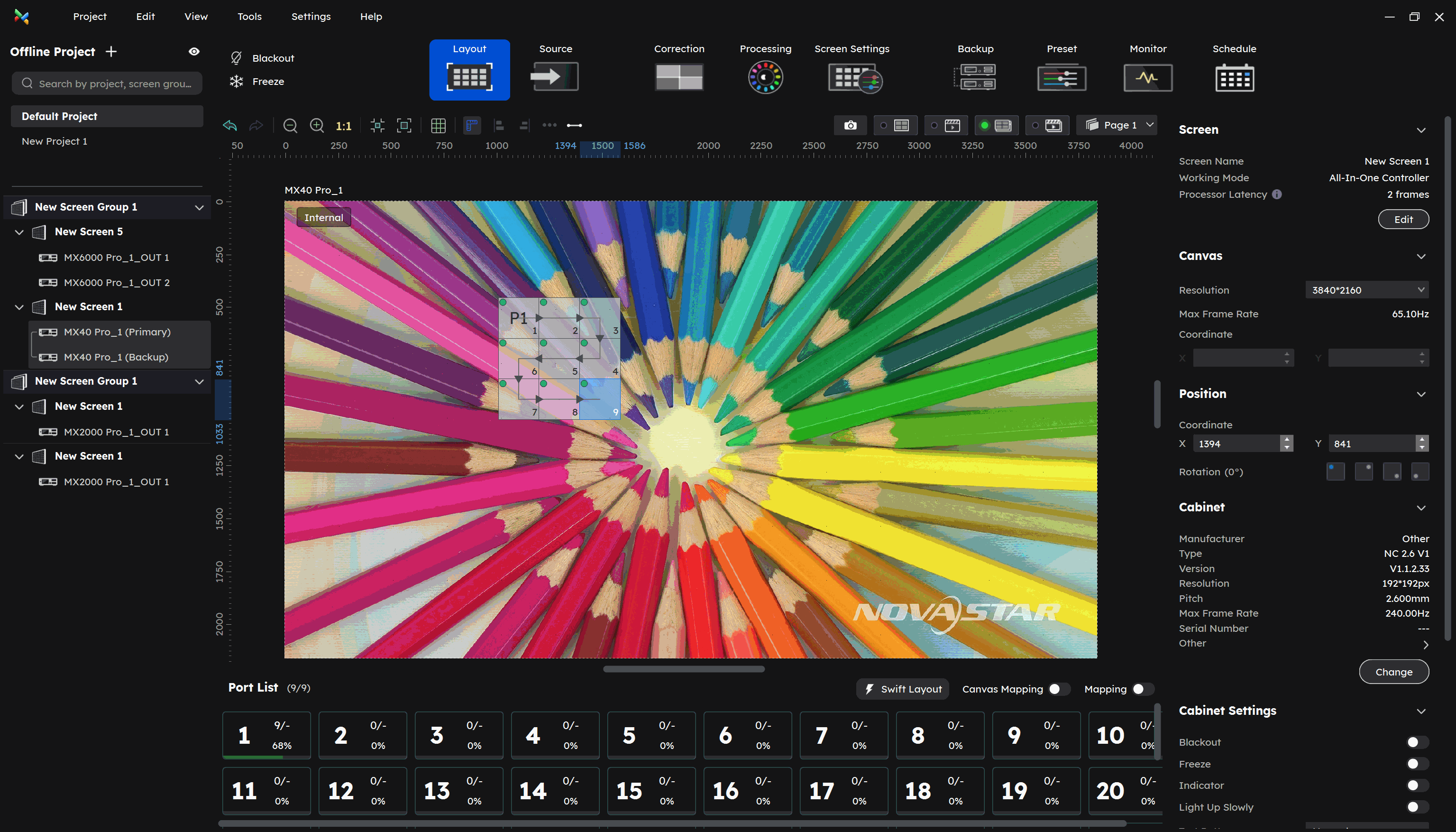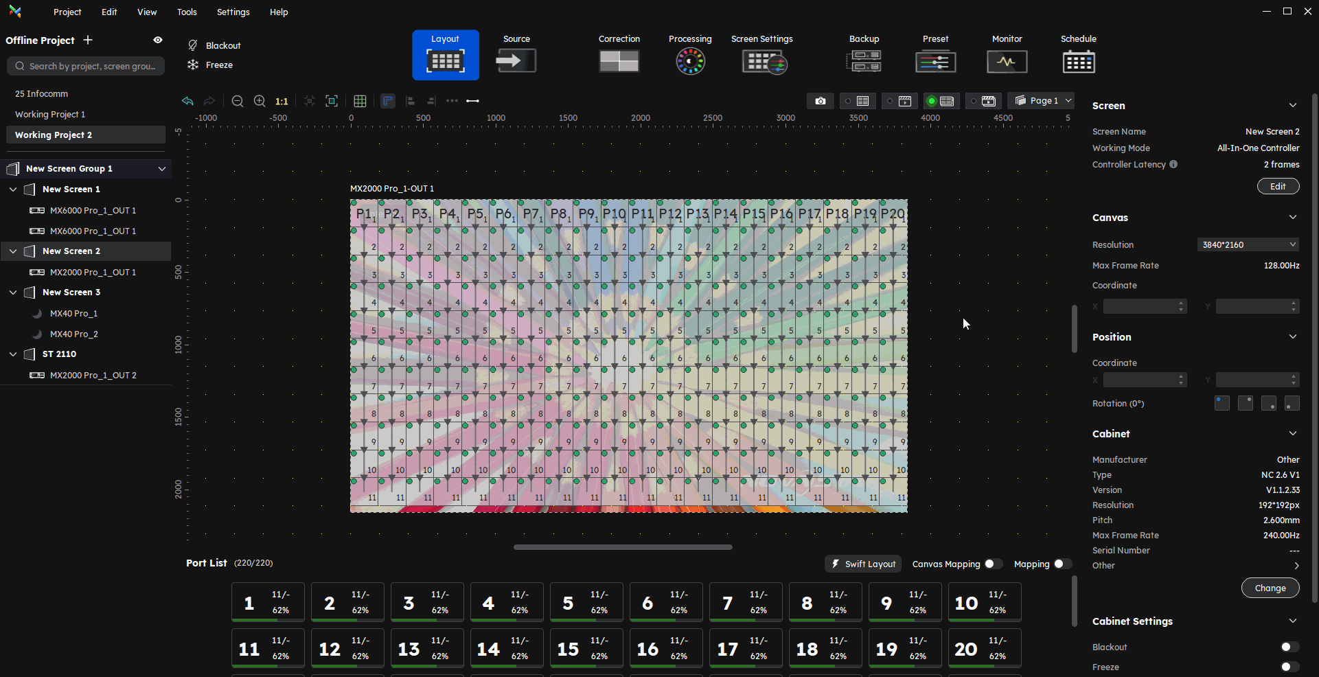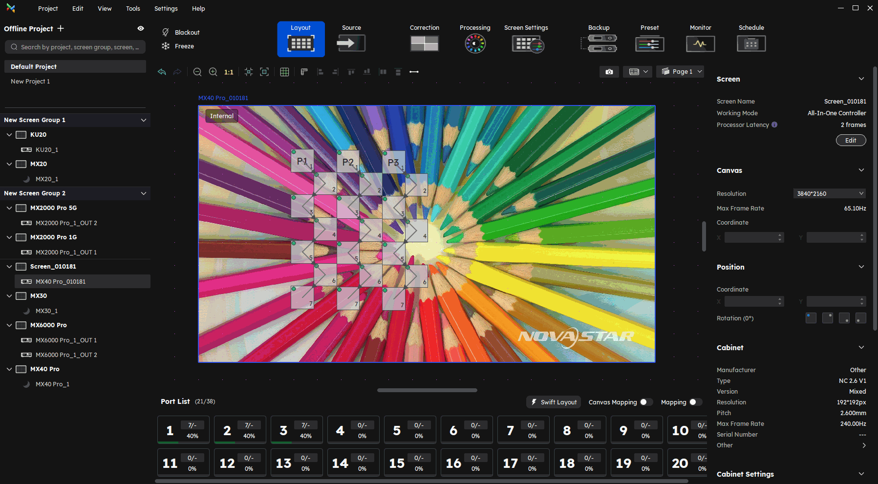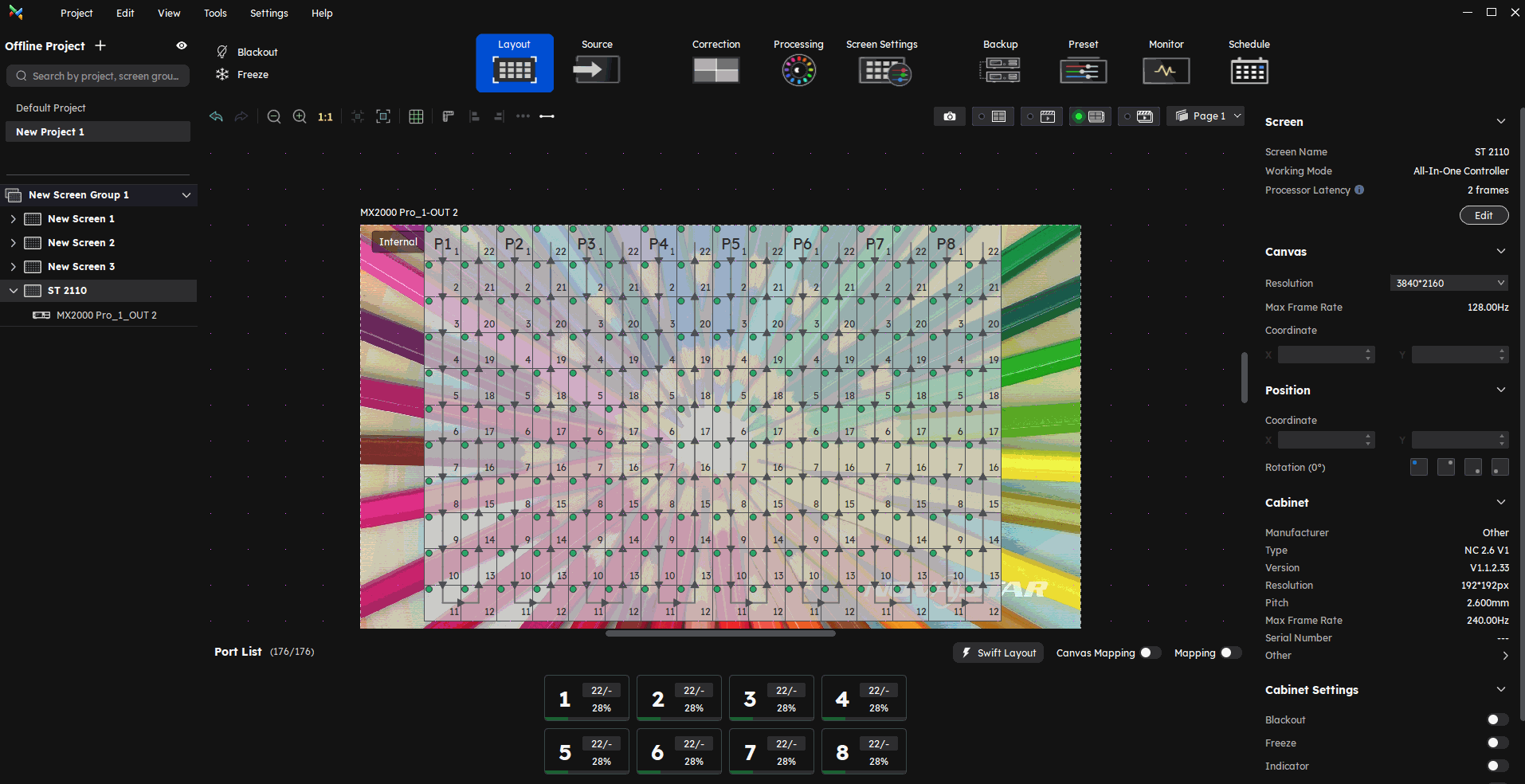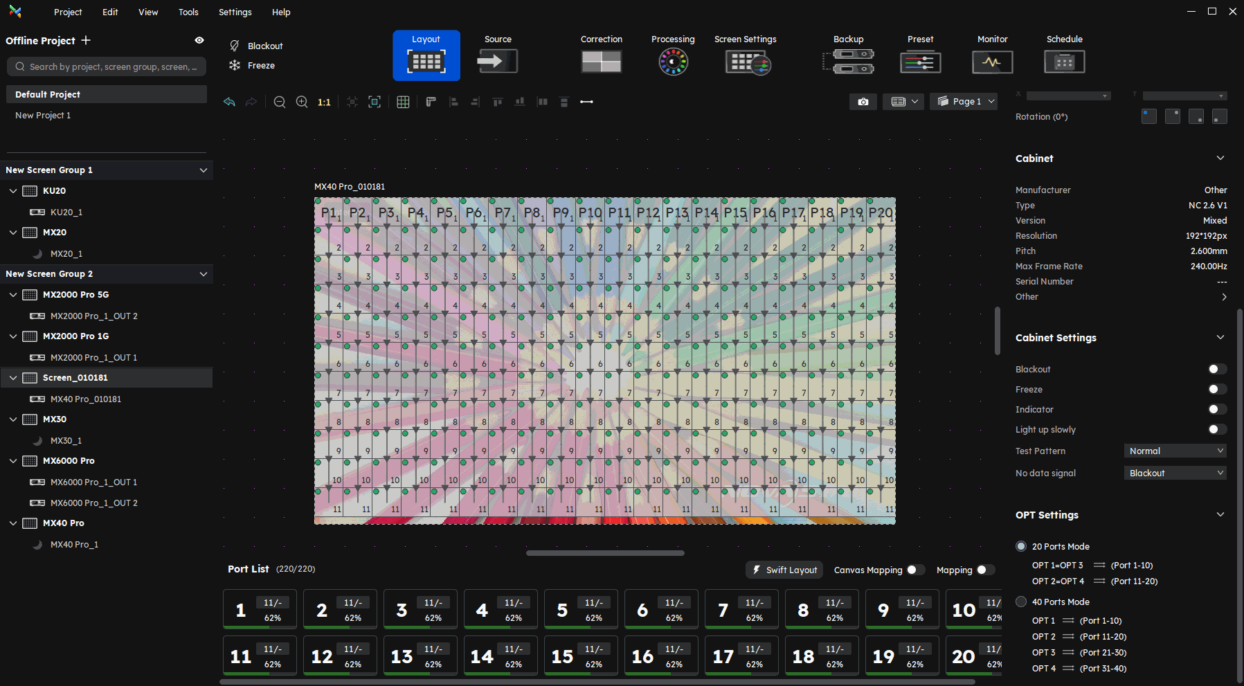 In version 1.5.0, in addition to the basic screen control available in previous versions, users can now view the basic information of screens, controllers, and cabinets through the screen group management interface and perform preset switching operations.