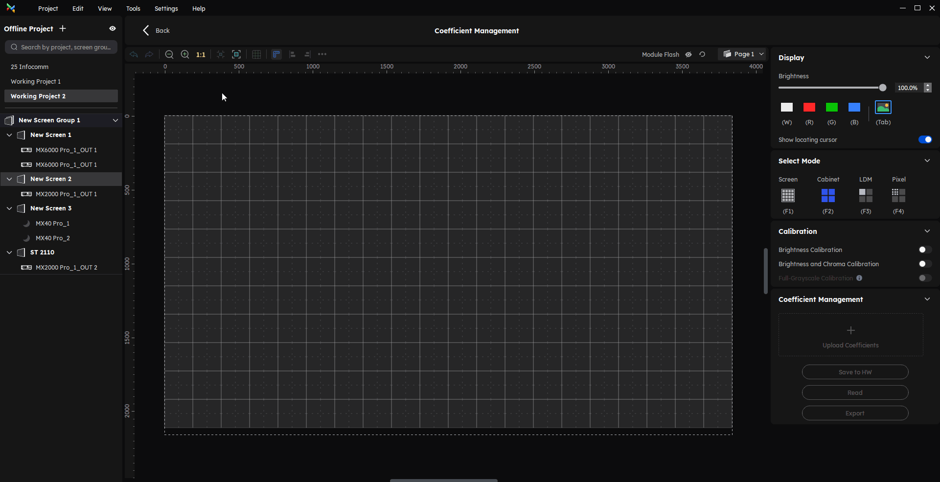 Upload Coefficients: Uploads local calibration coefficients and applies them to the selected display area.