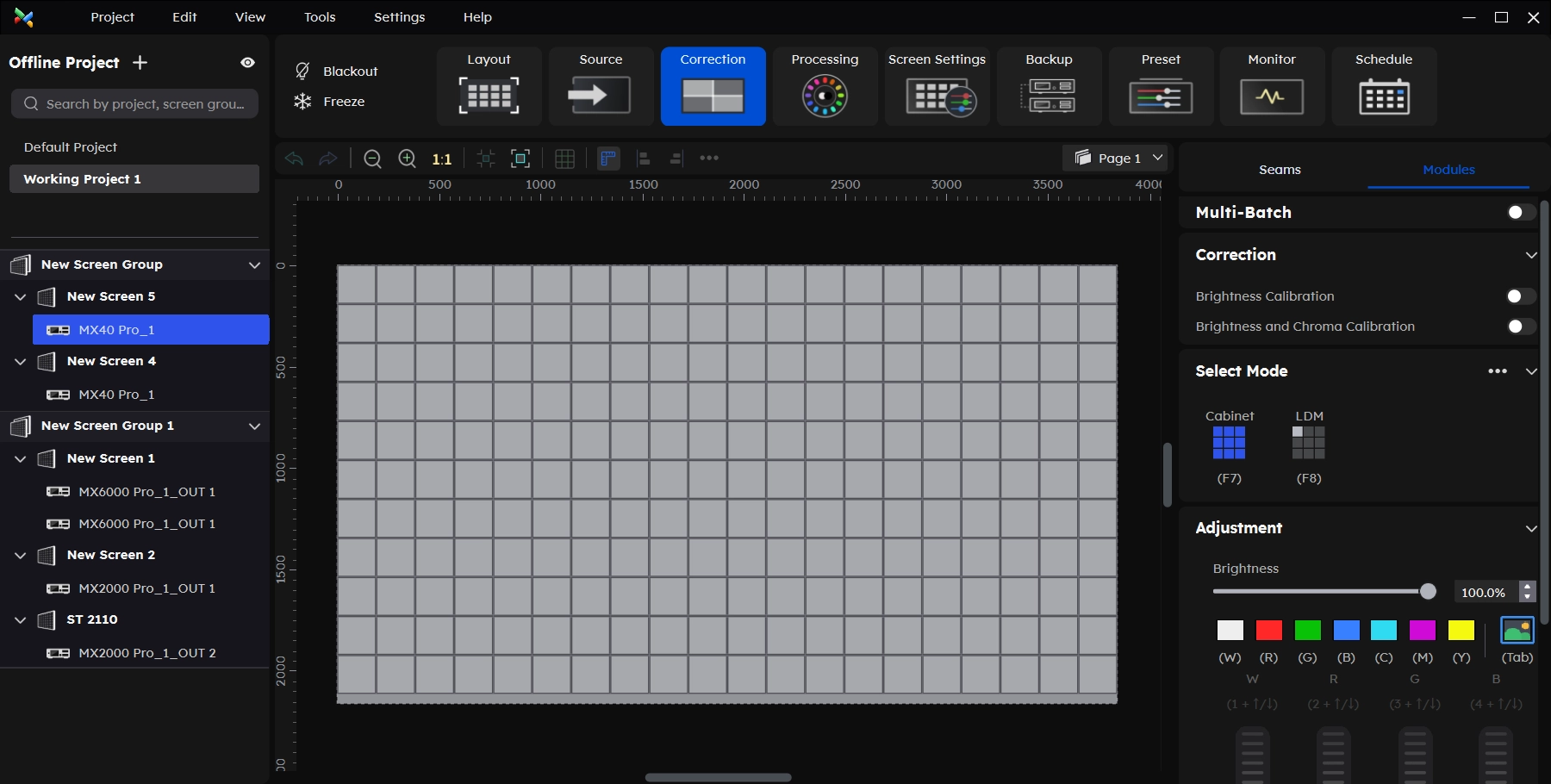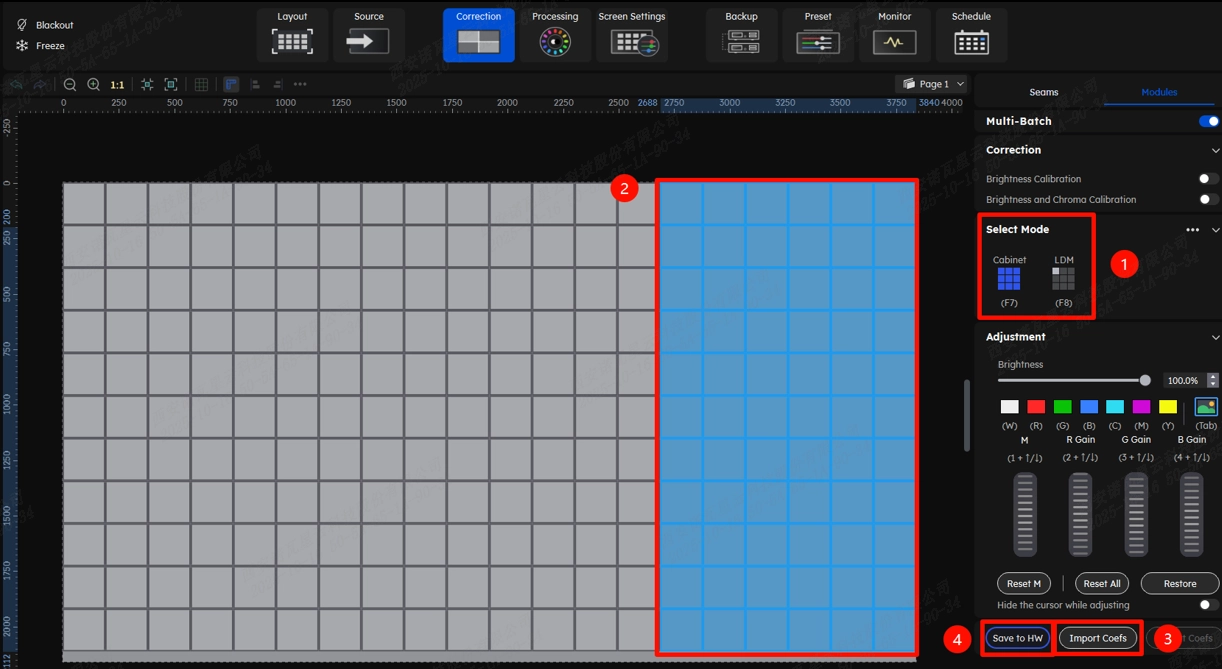 When a screen for various reasons, using different batches of cabinets or modules, results in some of the brightness or chromaticity display inconsistency, then it needs the multi-batch adjustment.