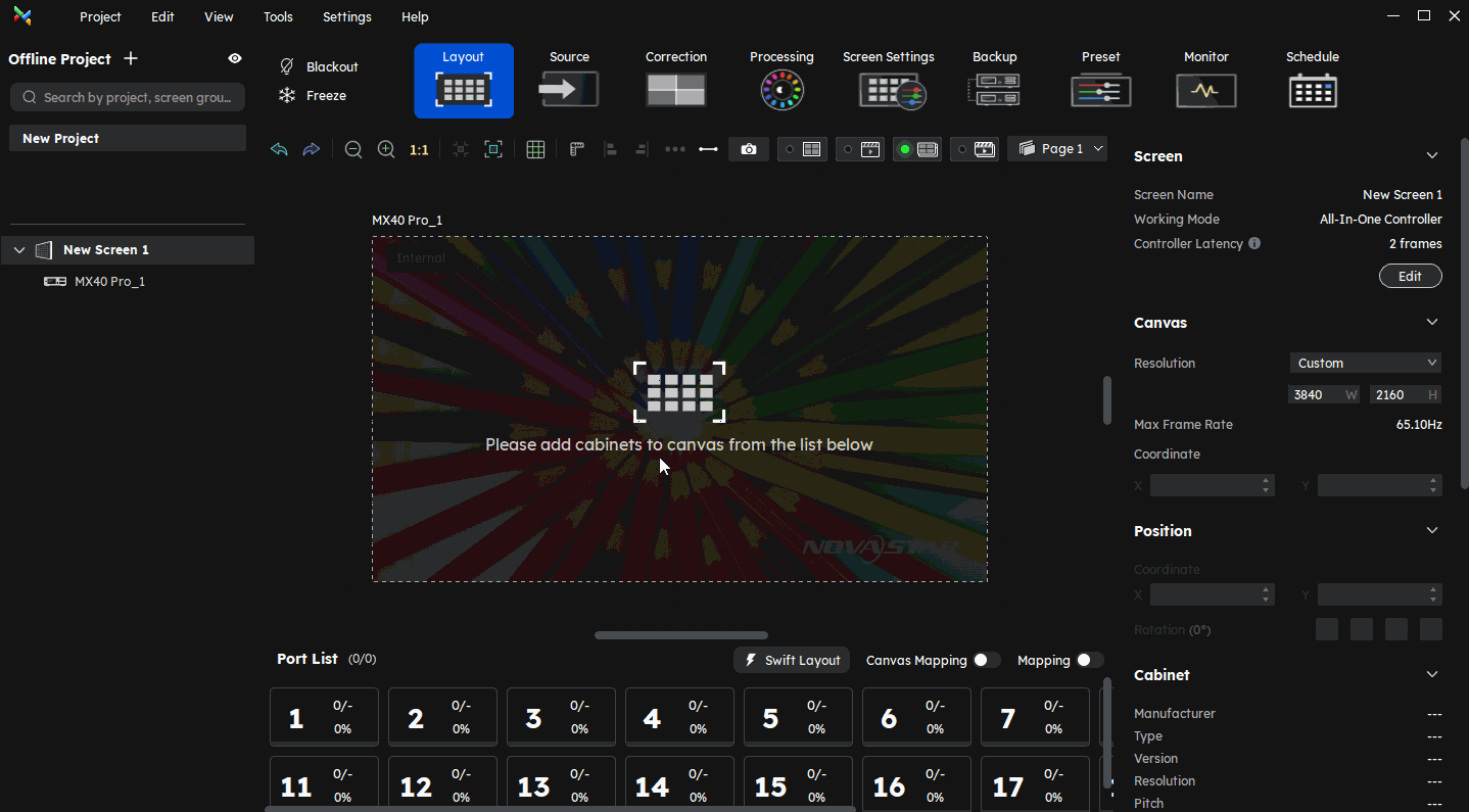 Users can complete various adjustments such as screen configuration and parameter settings in offline mode, without physically connecting devices. Due to this characteristic, offline mode is widely used in various rental scenarios and projects with high demands on configuration time.